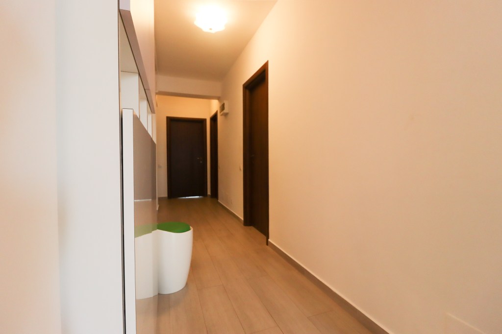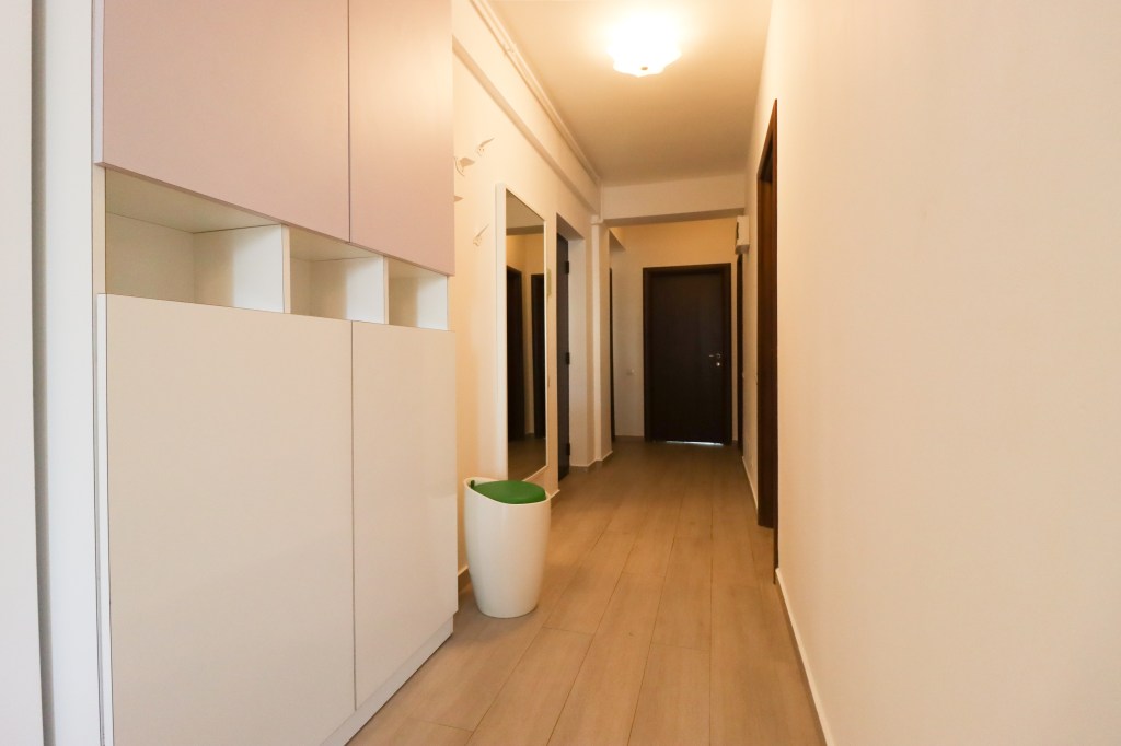 În momentul în care pășești înăuntru intri într-un hol unde se găsește un cuier, un dressing mic dar și un pantofar. În partea dreaptă găsim zona de zi ce cuprinde livingul, bucătăria și un grup sanitar iar în partea stângă zona de seară cu cele două dormitoare și cel de al doilea grup sanitar.