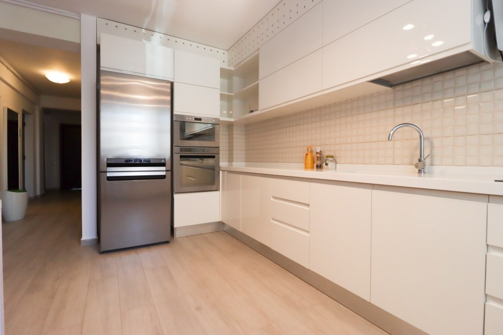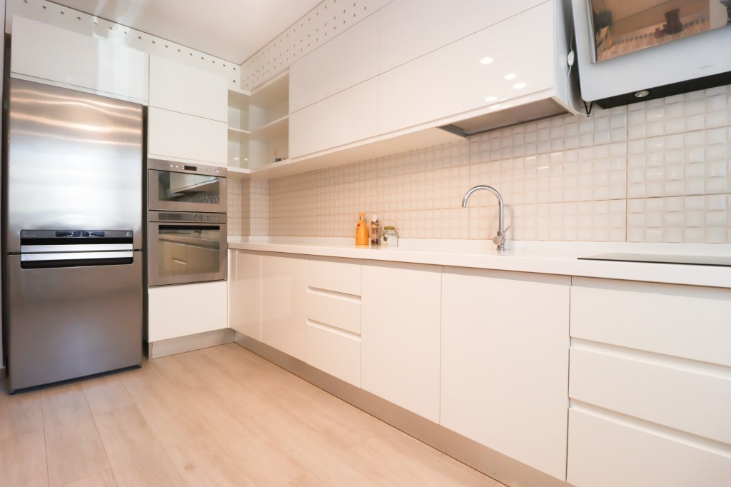 Acum să pătrundem în zona de zi. Livingul și bucătăria însumează 37 mp, o suprafață generoasă în care ai loc să te desfășori. Aici găsim un dressing foarte mare care te va scăpa de foarte multe lucruri pe care vrei să le ai depozitate, nu la vedere și tot aici este și accesul către un balcon unde ai amplasate o măsuță și un scaun unde poți să te răsfeți în zilele însorite cu o cafea bună.