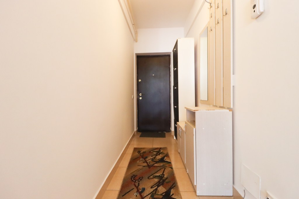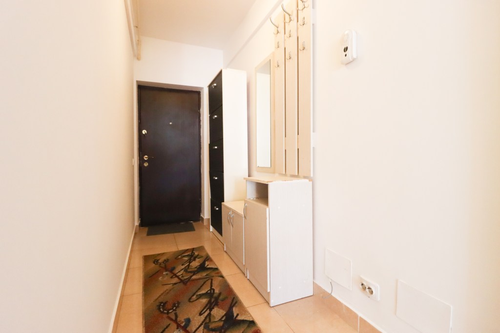 În momentul în care pășești înăuntru intri într-un hol unde poți montat un pantofar și un cuier iar de aici putem merge în living de unde avem acces către dormitor, grup sanitar sau bucătărie.