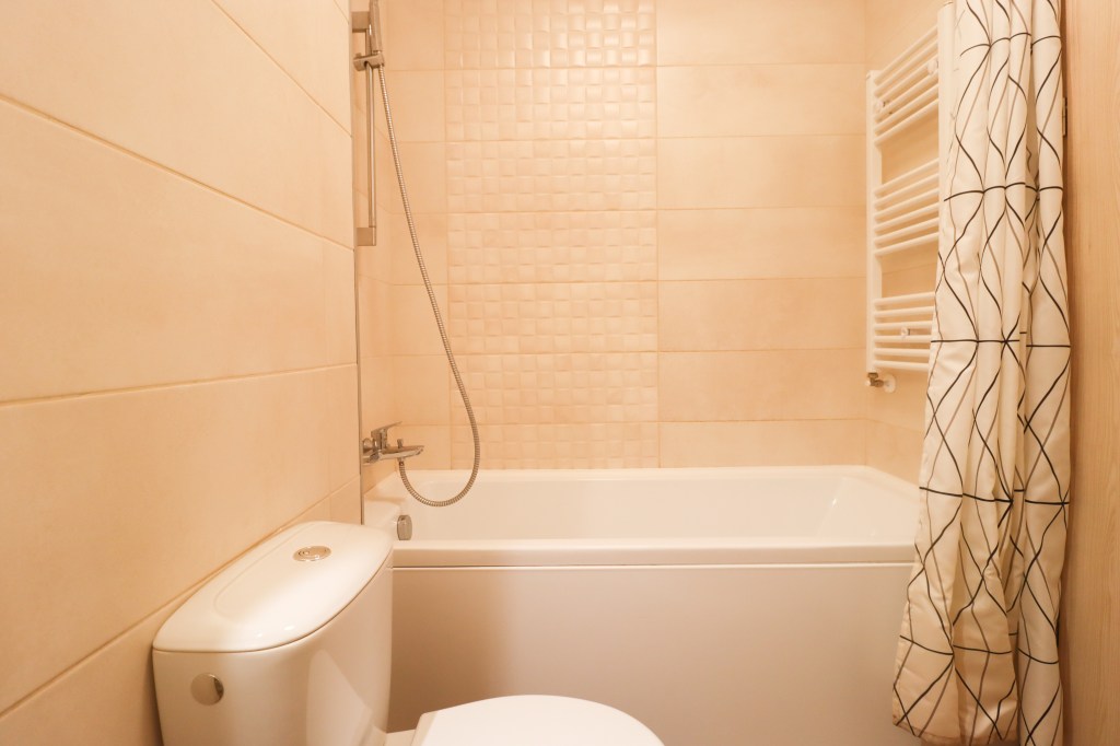 Grupul sanitar este dotat cu cadă și lavoar iar pentru o aerisire mai bună există un ventilator ce își face treaba.