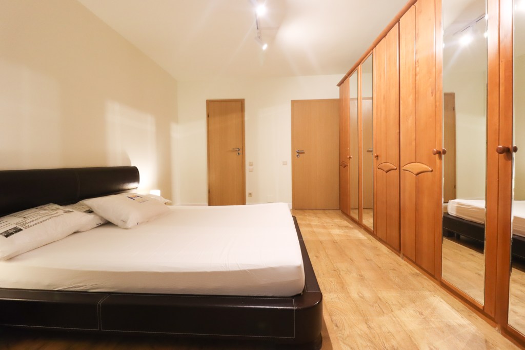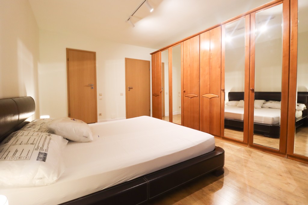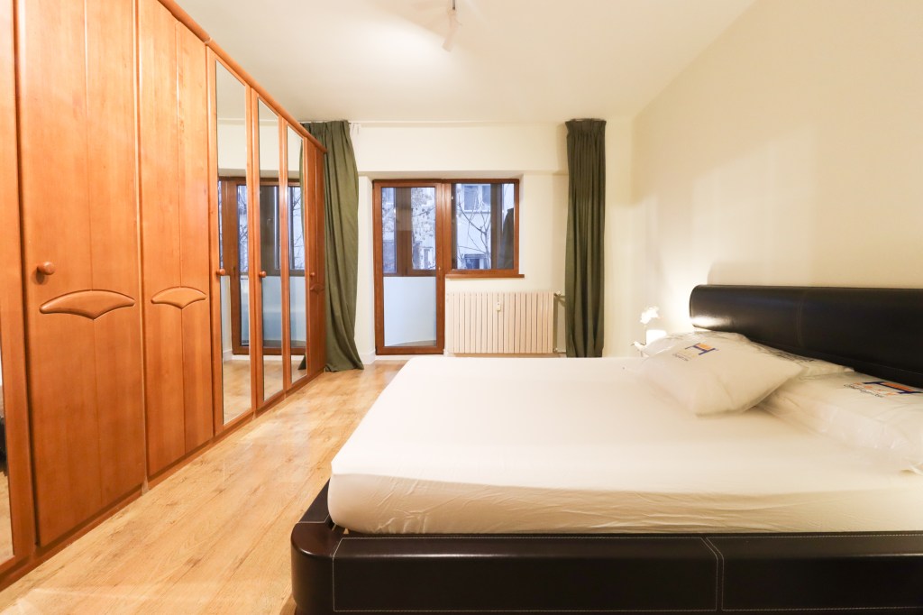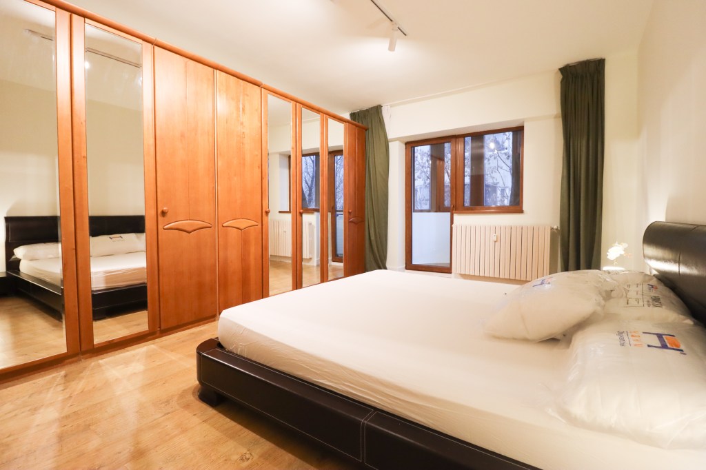 Acest dormitor are 19 mp, este ideal pentru parinți și este dotat cu un dressing mare, un pat pentru două persoane și două noptiere. Ca să fie un dormitor complet avem acces și pe un balcon închis și la grupul sanitar de serviciu, ce este dotat cu lavoar și wc.