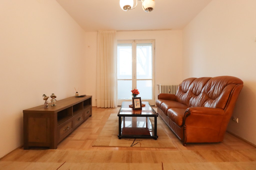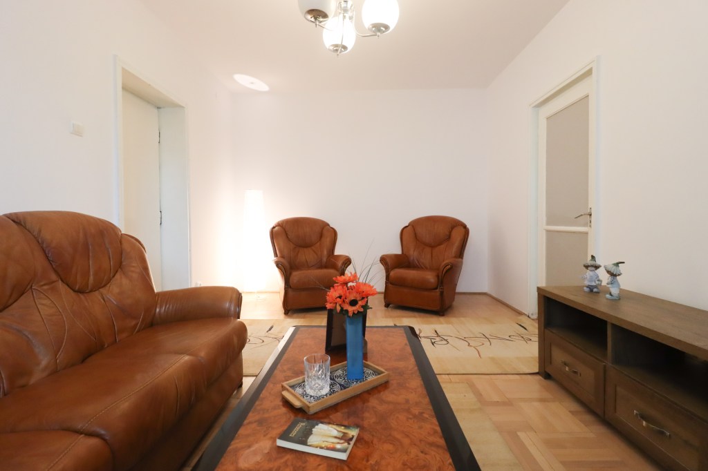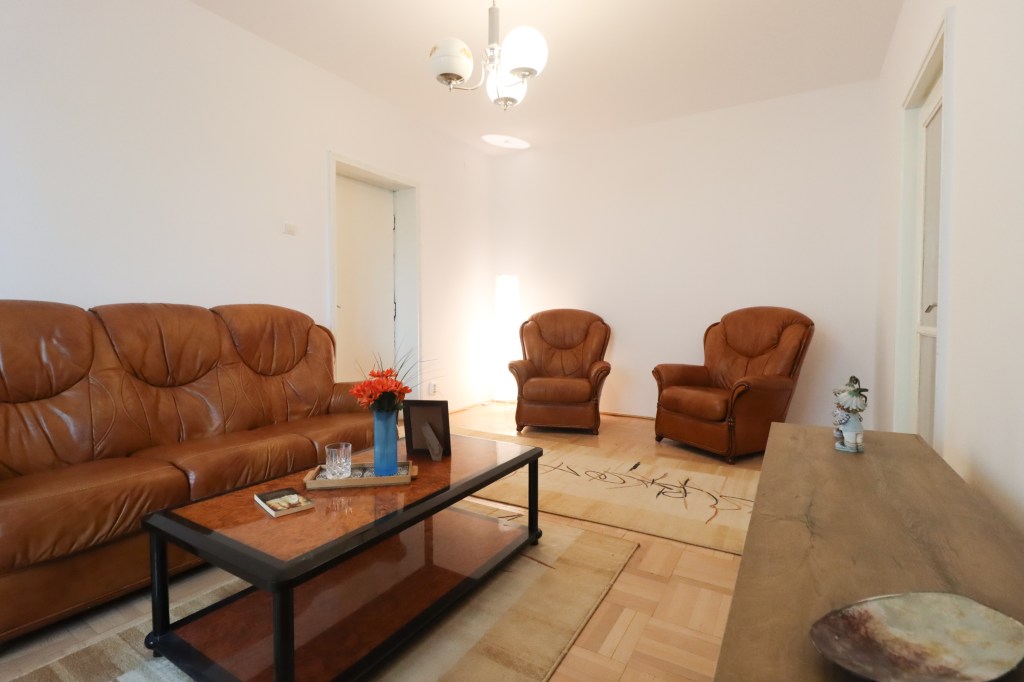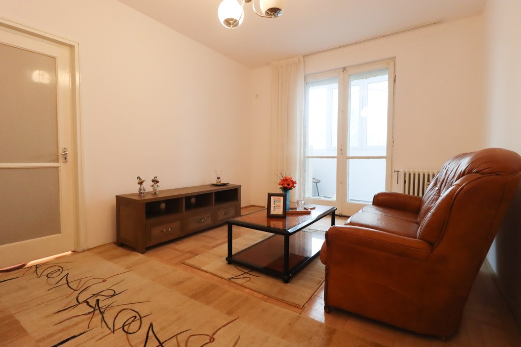 Livingul are o suprafață generoasă, în care ai loc să te desfășori, 17 mp. Aici găsim o canapea confortabilă (nu este extensibilă), două fotolii, o măsuță de cafea și o comodă pe care să stea televizorul (acesta se va aduce de către proprietar). Tot de aici avem și acces în balconul, închis, de 3 mp ce poate servi ca spațiu pentru relaxare.