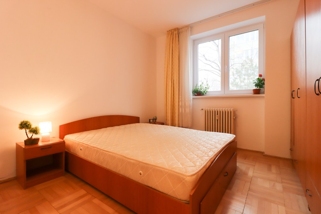 Este simplu dar practic, 12 mp. Avem un pat pentru două persoane, cu ladă pentru depozitare, două noptiere și un dressing mare. Vederea după cum am spus mai sus este pe spatele blocului iar ca punct cardinal avem estul (ca și restul apartamentului).