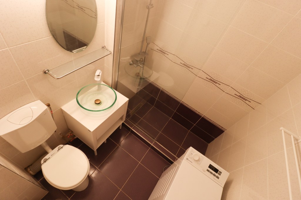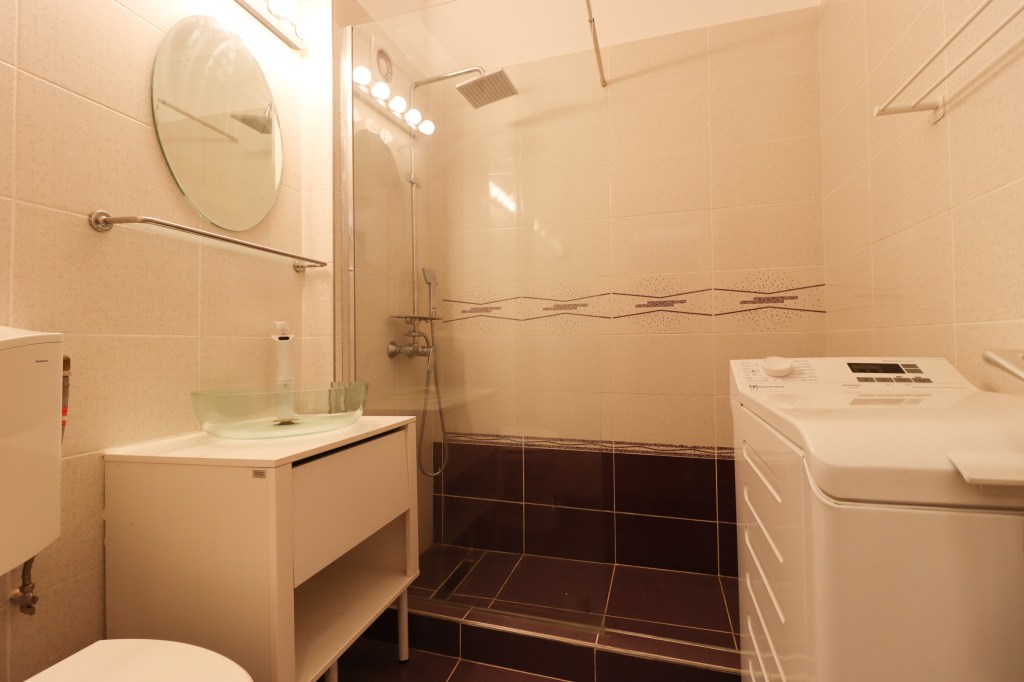 Aceasta are 3 mp, este echipată cu duș tip walk-in, wc și lavoar. Mașina de spălat rufe are și ea loc aici iar cămara din holul mic este pentru depozitare.