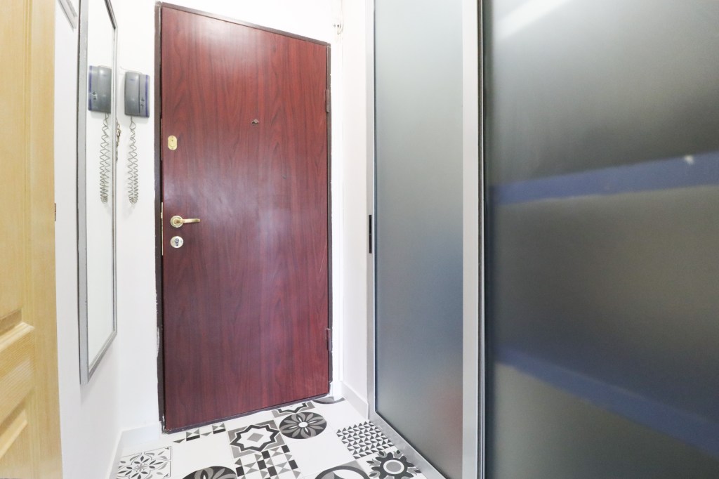 În momentul în care pășești înăuntru intri într-un hol, unde se găsește un dressing foarte încăpător. De aici ai acces către grupul sanitar în partea dreaptă sau către cameră înainte.