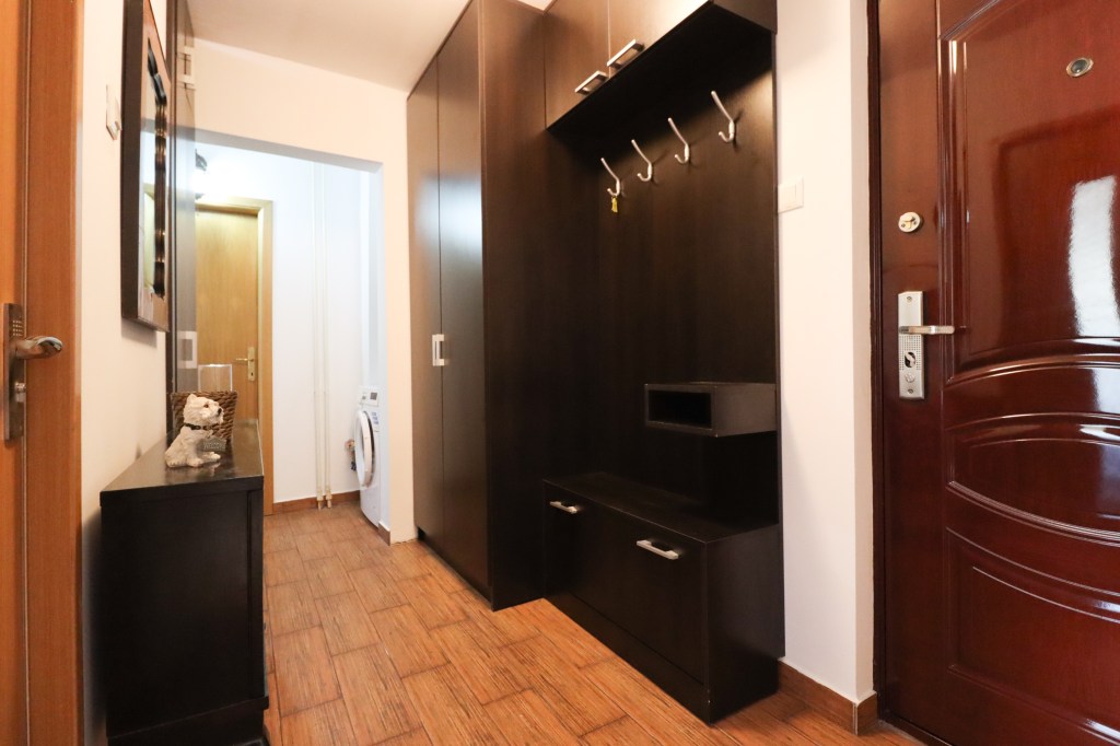 În momentul în care pășești înăuntru intri într-un hol mare, așa cum vă place, unde avem un cuier cu pantofar, un dressing dar și alte mici spații de depozitare pe care te lăsăm să le descoperi la vizionare. Din hol avem acces în partea stângă către living, înainte avem bucătăria iar în partea dreaptă dormitorul și grupul sanitar.