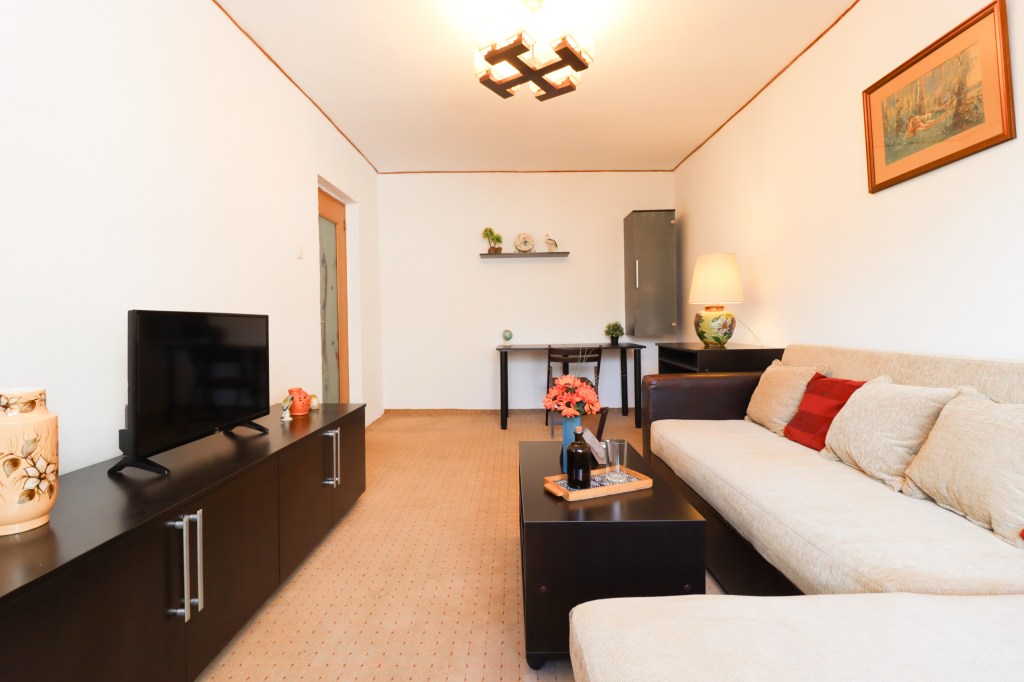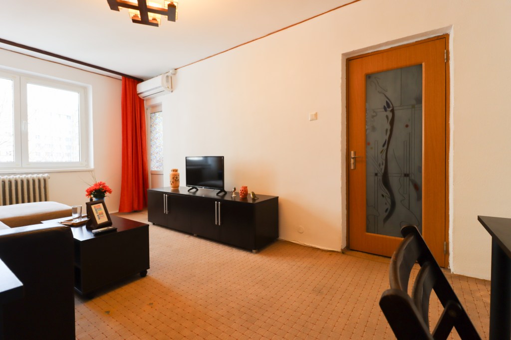 Apartamentul propus se află la etajul 4, acesta este decomandat, bucătăria este închisă, compartimentarea este una deosebită, funcțională și aparte acestei perioade, cu o suprafața utilă de 48 mp utili, cu balcon ajungând la 52 mp. Oreintarea camerelor este pe S-E iar vedere pe spatele blocului.