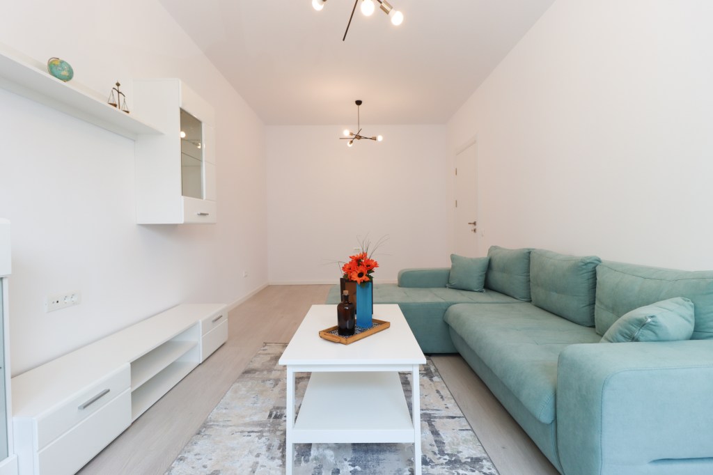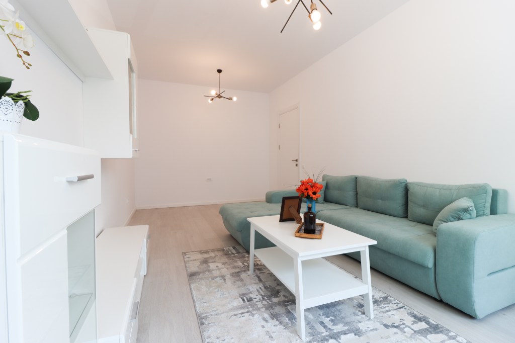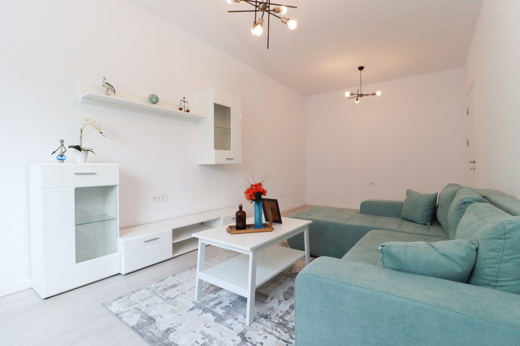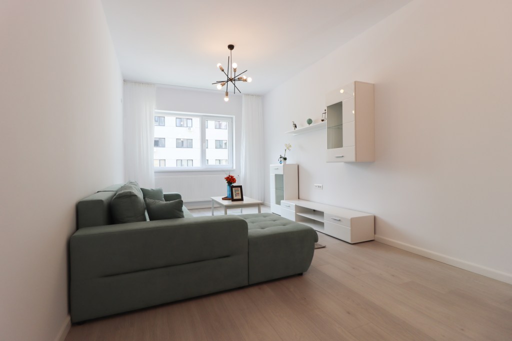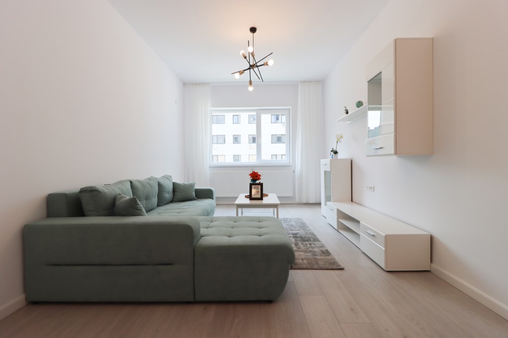 Livingul are 18 mp, în care avem o zonă de relaxare ce cuprinde o canapea mare, o măsuță de cafea iar vis a vis avem mobilierul de living. În partea goală a camerei te lăsăm pe tine să alegi ce să îți punem (birou, masă dining, etc.).
