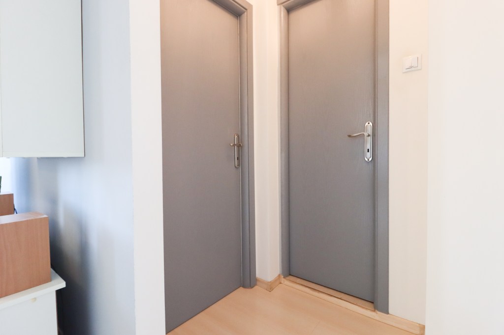 În momentul în care pășești înăuntru intri într-un hol unde avem un dressing generos iar de aici înainte avem bucătăria iar în partea dreaptă avem living-ul.