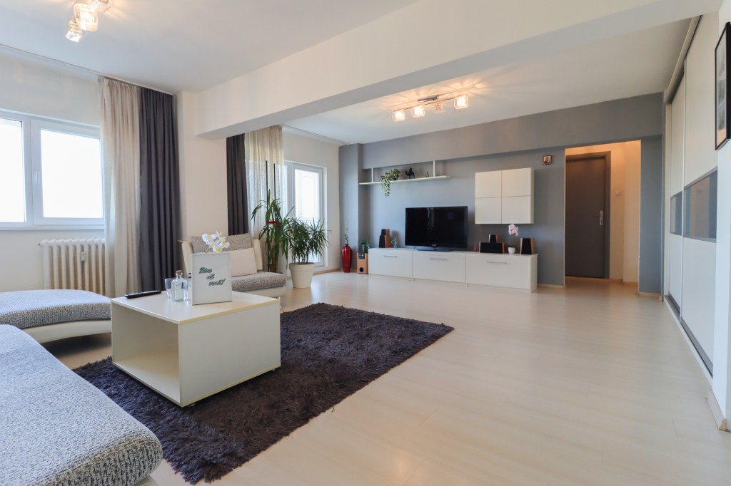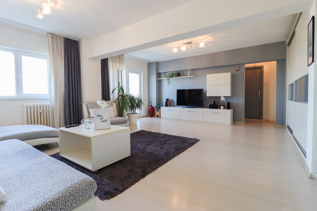 Apartamentul propus se află la etajul 9, acesta este semidecomandat (transformat din 3 camere), bucătăria este închisă, compartimentarea este una deosebită, funcțională și aparte acestei perioade, cu o suprafața utilă de 66 mp utili, cu balcon ajungând la 73 mp. Vedere este pe integral pe față, către bulevard iar ca punct cardinal avem nordul.