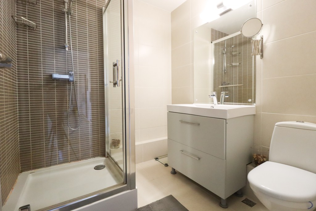 Acesta are 4 mp și este dotată cu cabină pentru duș, aerisirea este pe coloană iar mașina de spălat rufe are locul ei în holul secundar (deasupra ei avem și spații pentru depozitare).