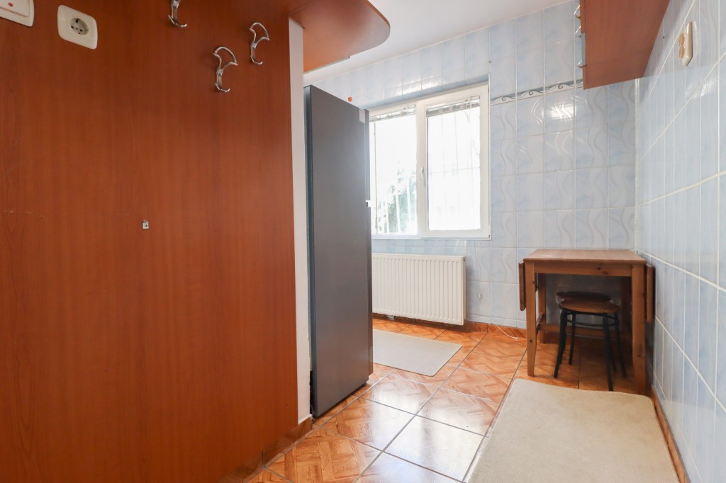 Bucătăria are 7 mp, este chipată cu tot ce îi trebuie și dacă vrei să o bagi în chirie nu mai ai nimic de cumpărat.