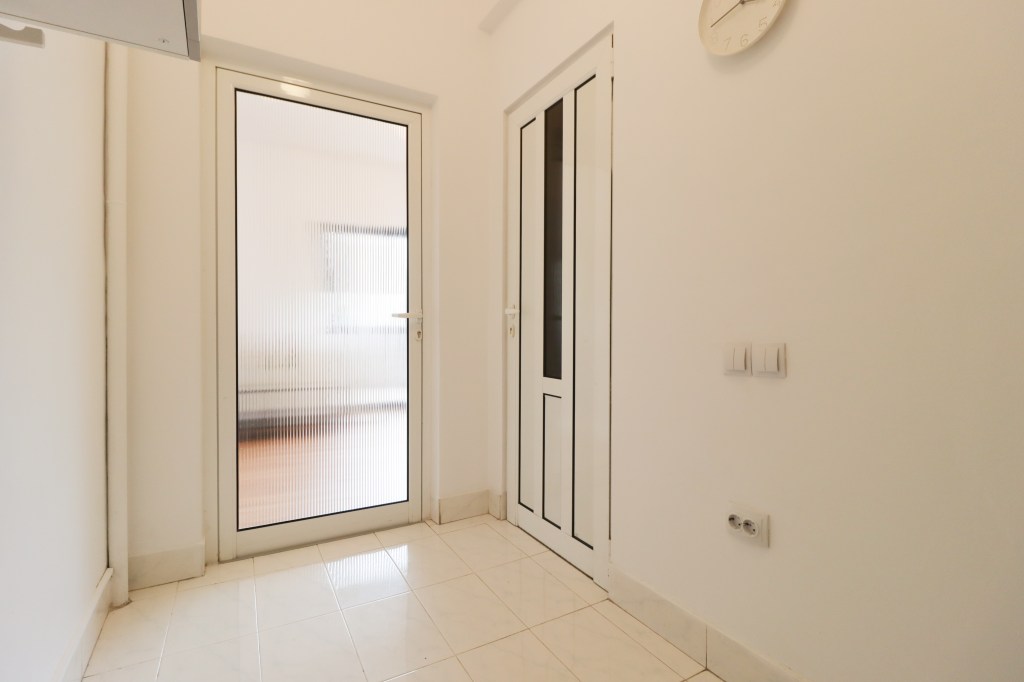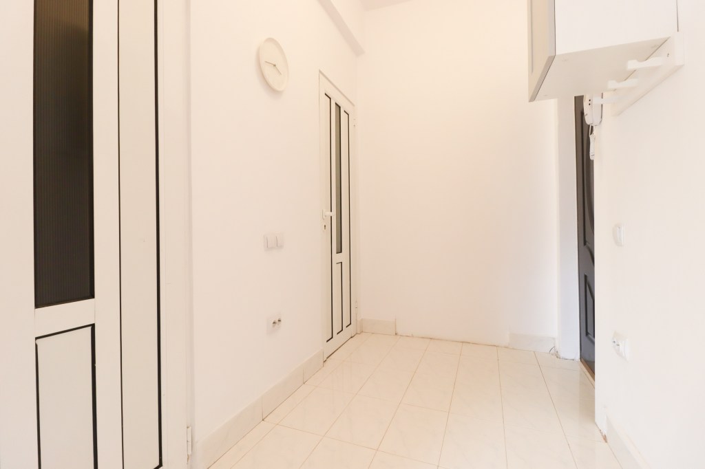 În momentul în care pășești înăuntru intri într-un hol destul de mare de unde în față avem o chicinetă (este goală), iar în partea stângă avem grupul sanitar și camera.