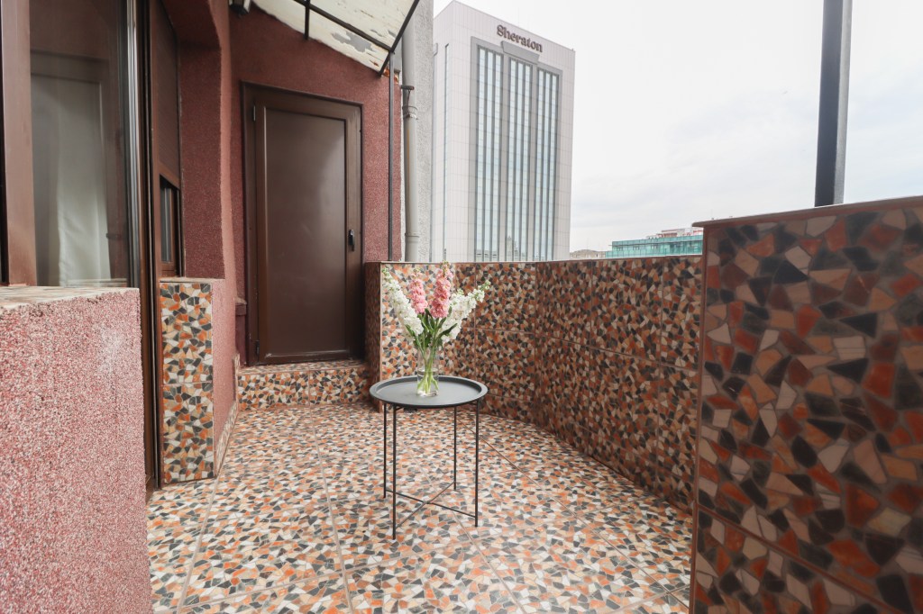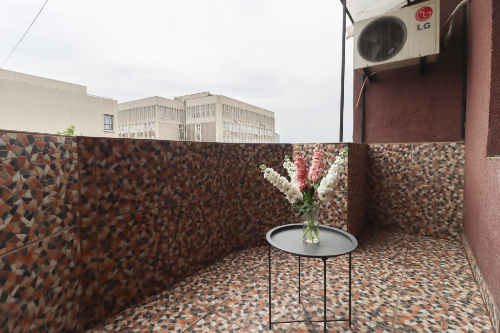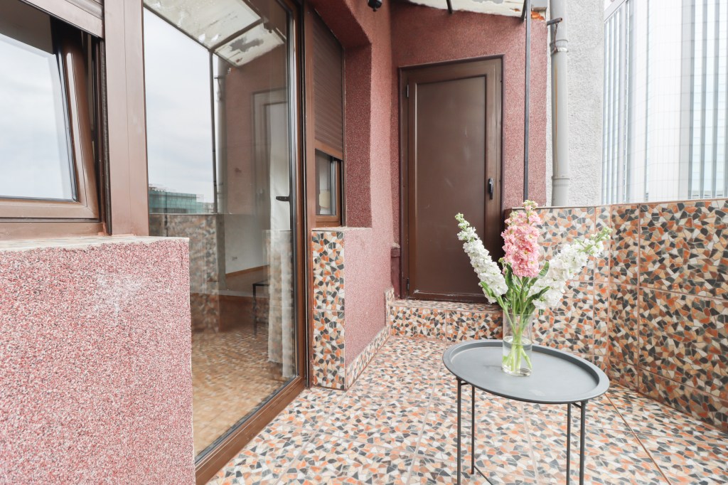 Camera are 14 mp, geamurile sunt mari iar lumina natuarlă patrunde. Avem pe doi pereți două oglinzi care pot fi perfecte dacă vrei să faci un salon de manechiură, ca idee. De aici avem acces pe terasa de 5 mp deschisă și unde mai avem o mică debara pentru a ascunde ce nu vrei sa ai la vedere.