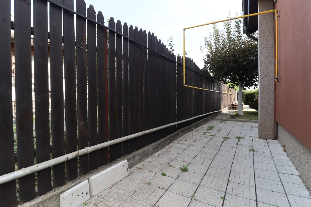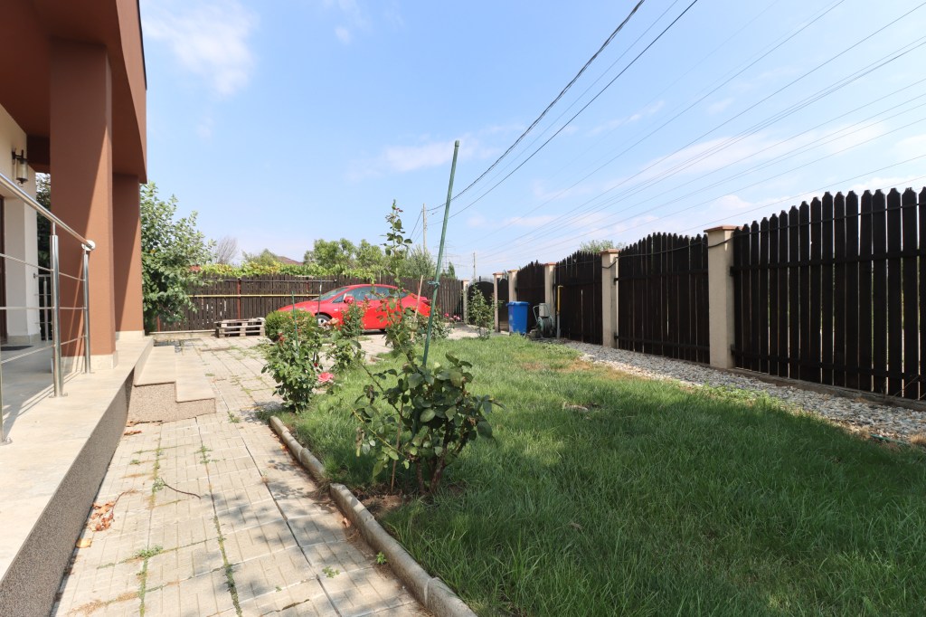 Avem o curte de 483 mp, liberă. În față avem loc pentru două mașini, în spate avem un foișor, o debara pentru depozitare și încă un spațiu tot pentru depozitare. Vegetația este bogată și matură încât tu să te bucuri de ea.